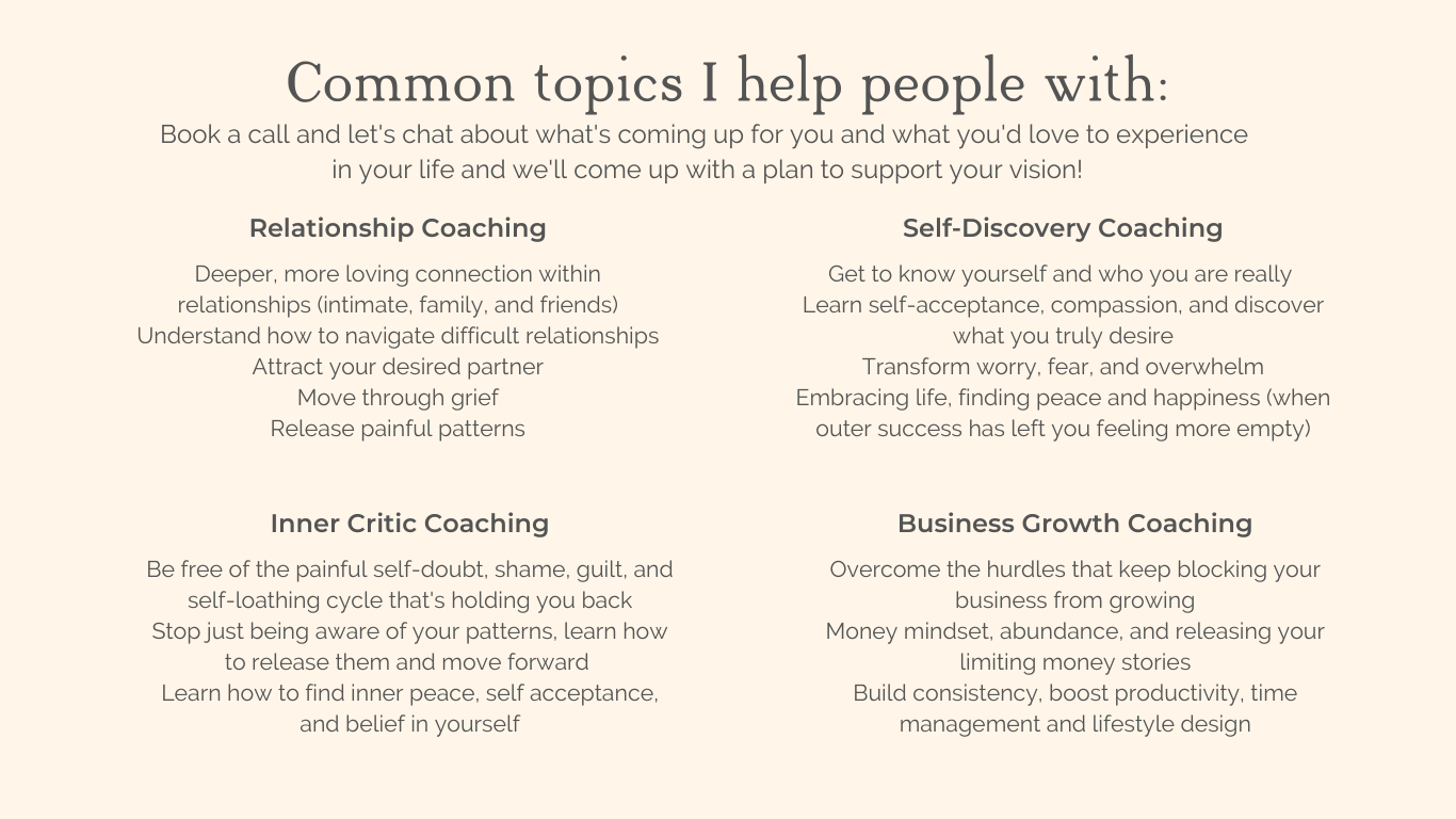Mentorships are customized to your goals, and can range from 1 session, a VIP day, 1-month, 3-month, or a 6 month mentorship, book a call to find out which is best for YOUR needs.